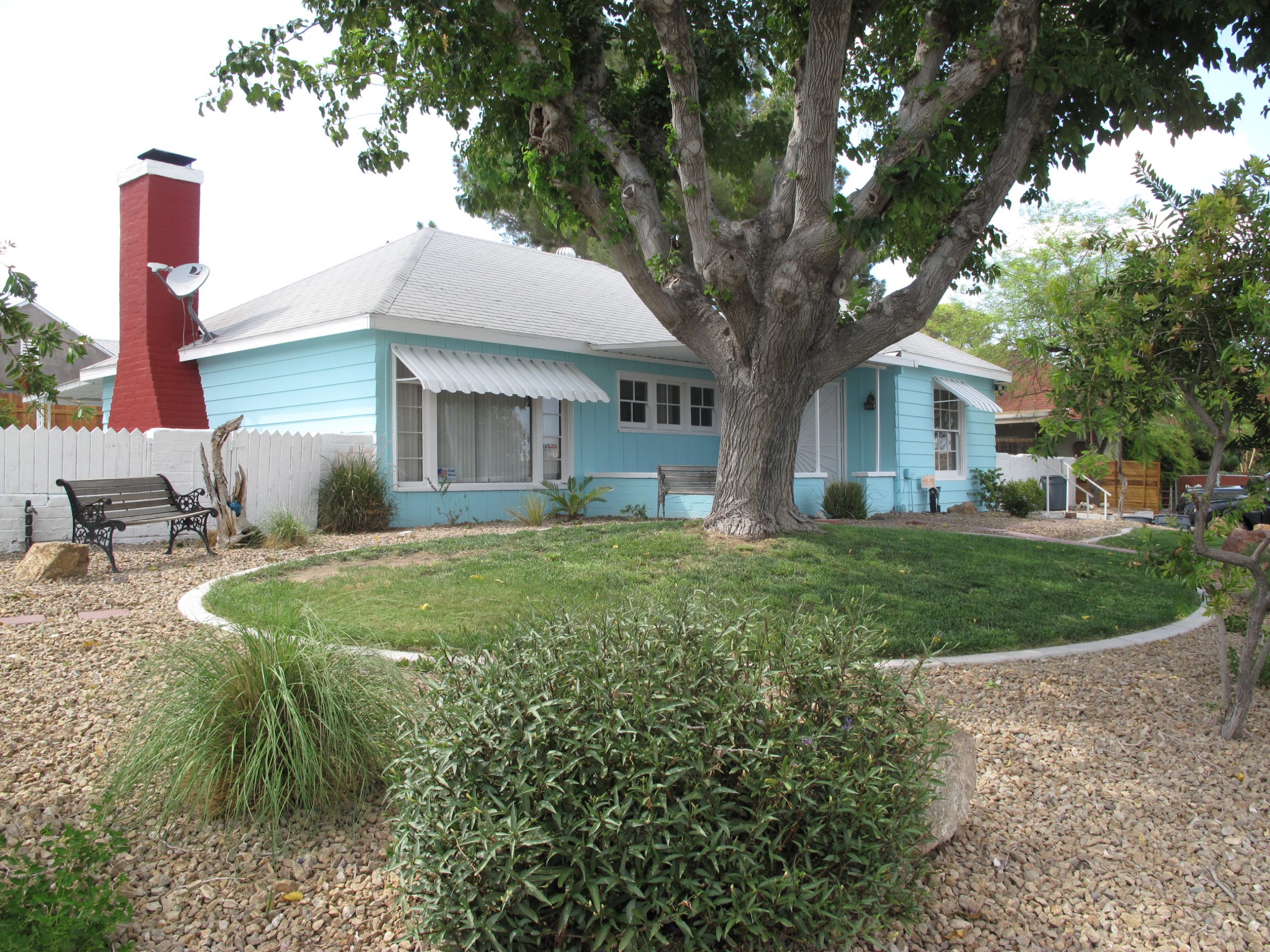 The 625 Huntridge homes were built “way out in the desert” on both sides of Maryland Parkway, just on the other side of Charleston Blvd. Huntridge Circle Park and the Huntridge Theater were among the amenities that were developed at the same time. All of the homes were built as 2 bedroom, 1 bath homes between 850 and 900 sf. The carports were under the roof of the home, and designed to be able to be converted to living space if the future owners wanted to fill them in. Most of the homes are now expanded and there are only a small handful that are the original footprint. The one we’ll be telling you about on Tuesday has had the carport converted into a wood paneled den with wood burning fireplace.