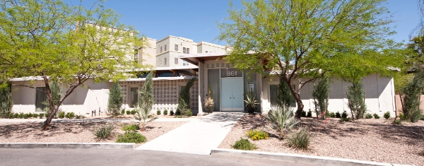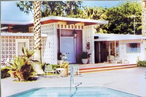 Designed by architect Hugh Taylor and built by Helen and Antonio Morelli in 1959, the Morelli House is a prime example of the newly popular mid-century modern homes constructed in Las Vegas in the post-World War II years between approximately 1946 and 1969. The natural materials in the living room – Philippine mahogany, white marble and pleated copper –emphasize the mid-century modern style.