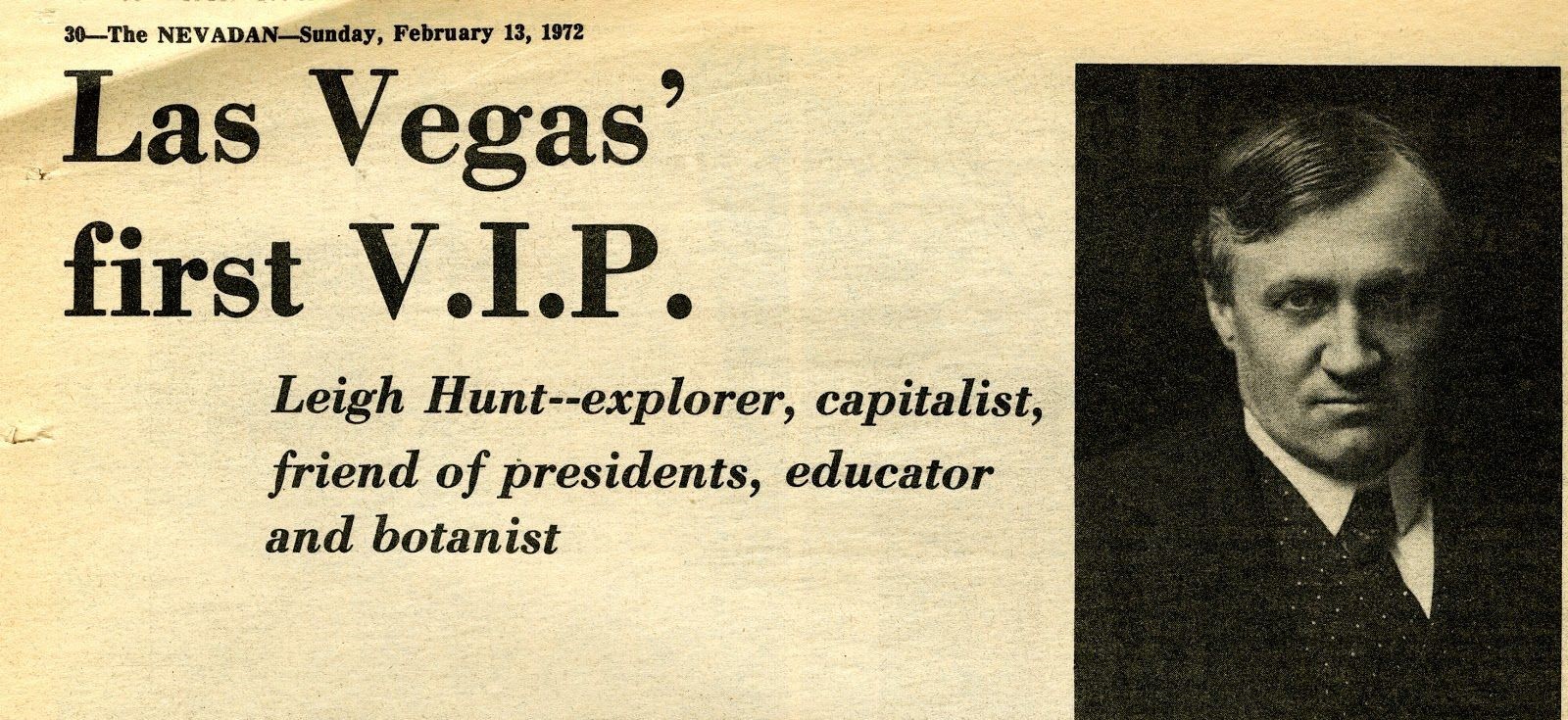 Photo and headline from The Nevadan Feb 13, 1972 , courtesy Nevada State Museum Archives